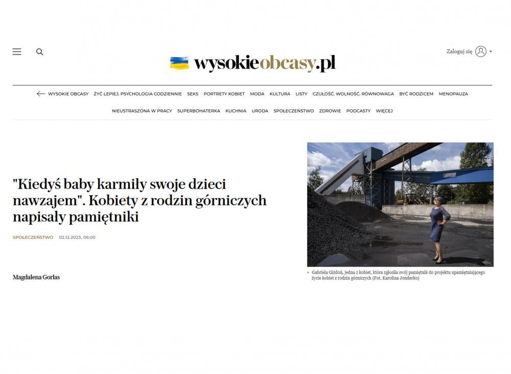W mediach Audycja Manna i Koziołka: Między książkami 75, 29.08.2025 Rozmowa o wiatrakach oraz o książce Moniki Glosowitz "Opowieści kobiet z rodzin górniczych". Spotkanie w CK Zamek w Poznaniu Spotkanie z Antoniną Tosiek i Moniką Glosowitz, CK Zamek, Poznań, 18.11.2025 Szychta oczami kobiet, TVP3 Pamiętniki w TVP3 22.08.2025 Pamiętniki w TV Zabrze, edycja 2025 V edycja Pamiętników w TV Zabrze: podsumowanie i relacja z gali Dej pozór. Szoł tok Izoldy Czmok Pamiętniki w TVP3 w programie Izoldy Czmok, 27.10.2024 Pocztówki z Liverpoolu 8.03.2025 Audycja prof. Tadeusza Sławka w cyklu "Pocztówki z Liveropoolu", poświęcona Opowieściom kobiet z rodzin górniczych Tok FM Historie kobiet z rodzin górniczych Czas kultury Każda historia rodzinna jest historią społeczną Rybnicka.eu Trzeba być silną, żeby być kobietą z rodziny górniczej Pytanie na śniadanie Kobiety z górniczych rodzin napisały pamiętniki Dzień dobry TVN Z pamiętnika żony górnika. "Każdy dzień może być tym ostatnim" Radio Eska "Pamiętniki kobiet z rodzin górniczych" Organizatorzy czekają na wasze historie Radio 90 Pamiętniki kobiet z rodzin górniczych. Nabór pań chętnych do snucia opowieści tylko do końca miesiąca Wysokie Obcasy "Kiedyś baby karmiły swoje dzieci nawzajem". Kobiety z rodzin górniczych napisały pamiętniki Ślązag Rozmowa z Moniką Glosowitz, pomysłodawczynią i koordynatorka projektu "Pamiętniki kobiet z rodzin górniczych". « 1 2 »